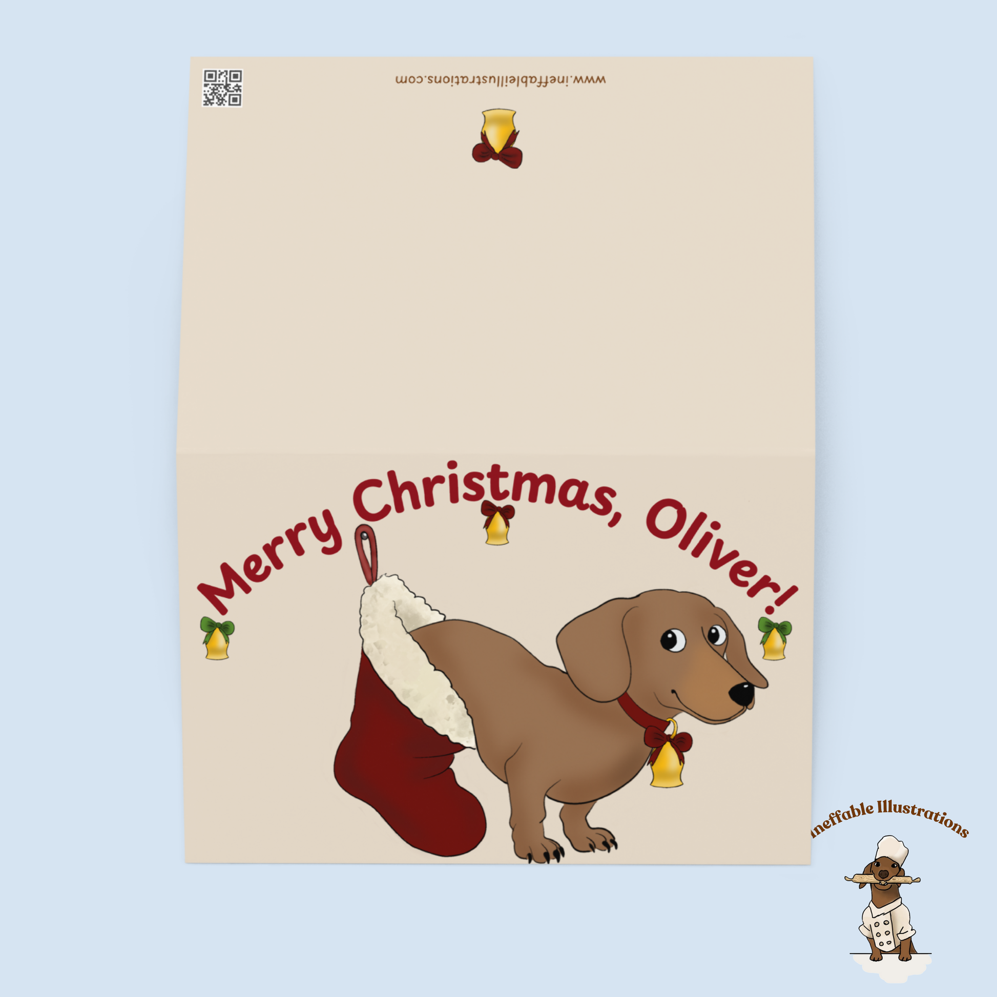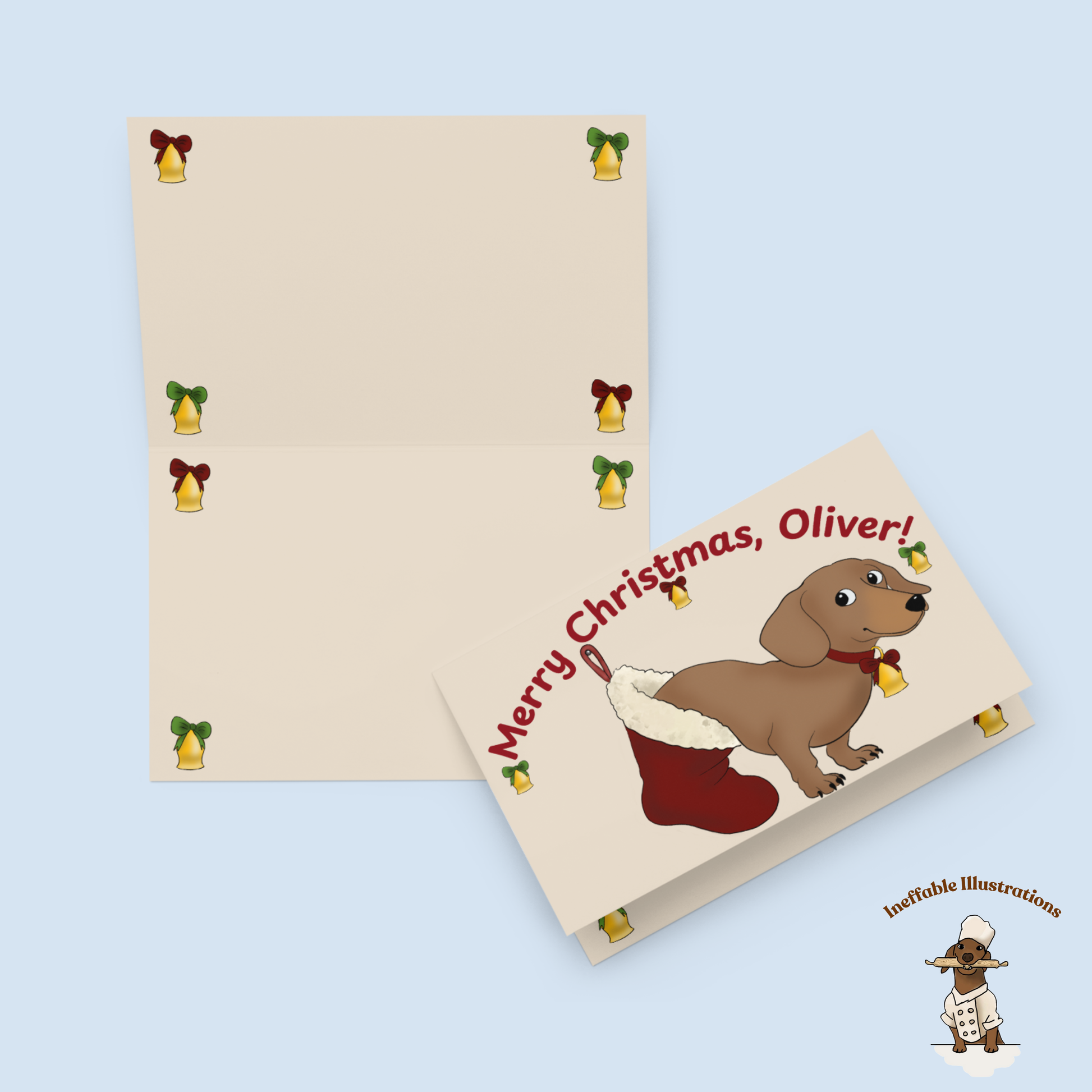 Personalizable Oliver Dachshund Christmas Greeting Card - Custom Name