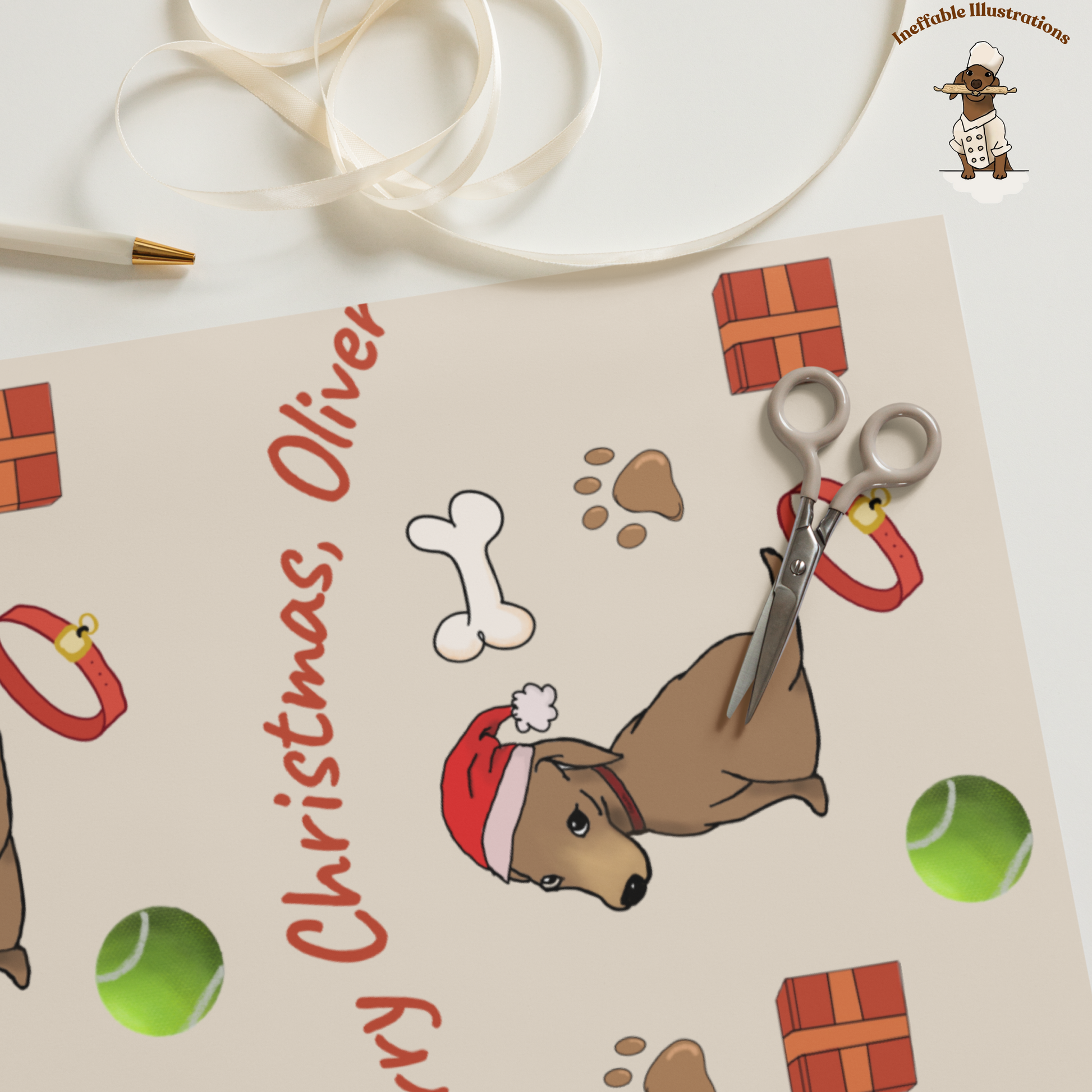 Personalized Dachshund Christmas Wrapping Paper - Custom Name Gift Wrap with Oliver - Festive Holiday Gift Wrap Sheets